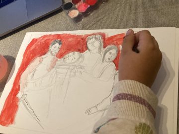 Los alumnos y alumnas, con la ayuda de nuestra mascota del proyecto Paulo Picasso, estuvieron observando muy atentamente los cuadros y comparando temáticas, colores e historias inventadas según lo que nos transmiten los cuadros y nuestras vivencias personales. Fue una experiencia muy enriquecedora tanto para el alumnado como para las familias que nos acompañaron, así como profesoras.