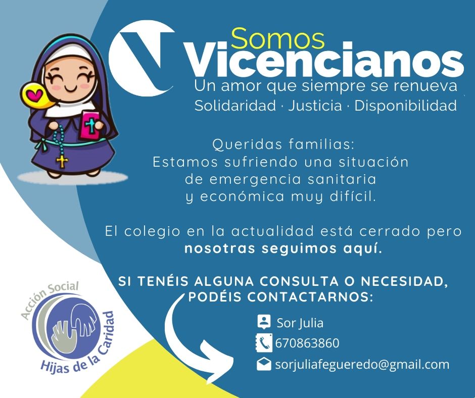 Estamos sufriendo una situación de emergencia sanitaria y económica muy difícil. El colegio en la actualidad está cerrado, pero nosotras estamos aquí. Seguimos ayudando a los más desfavorecidos.
