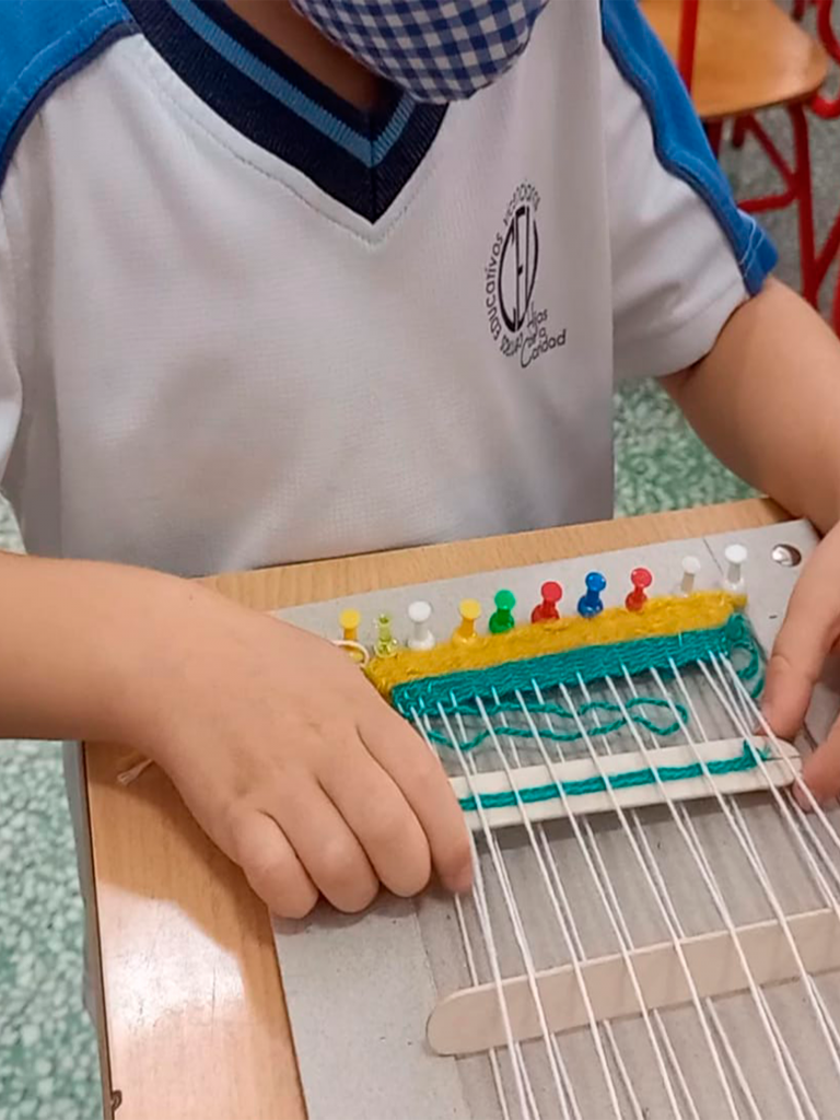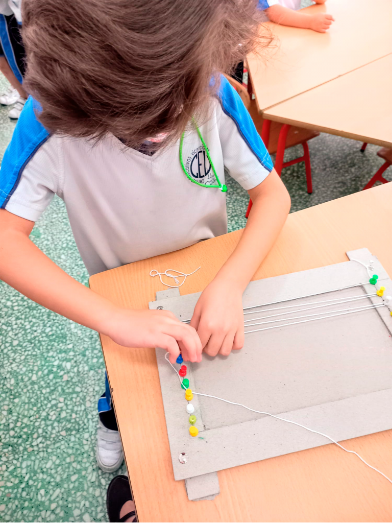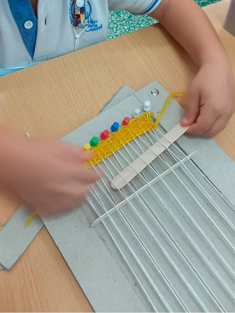 En 3º de Infantil, los alumnos y alumnas están construyendo un telar casero. Somos conscientes de la importancia de reutilizar y por eso hemos usado materiales como cartones reciclados y restos de lanas, en un proyecto de «coste cero».