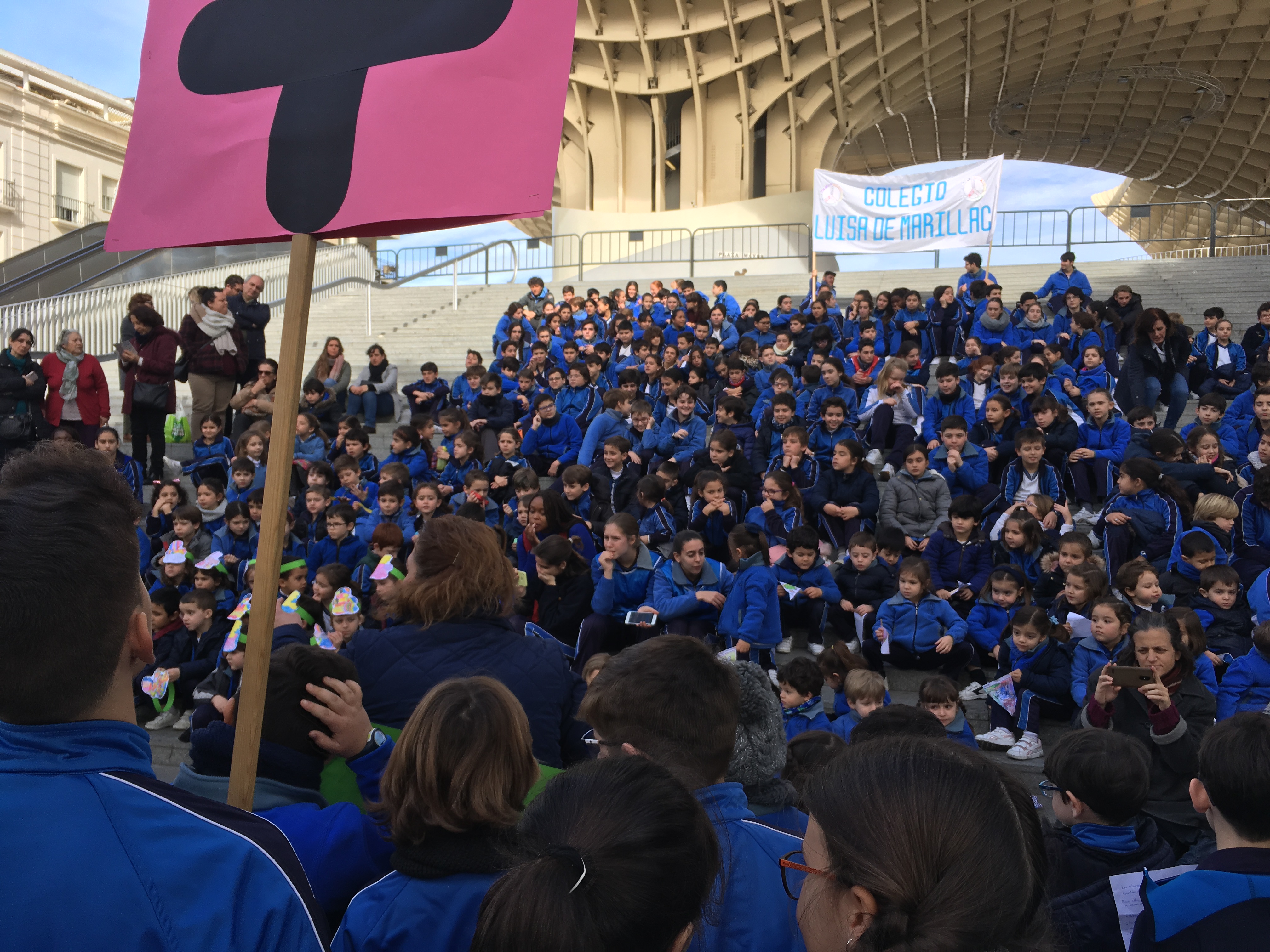 El día 30 de enero del 2019, Día de la Paz y la no violencia, todo el colegio Luisa de Marillac nos congregamos en las «Setas» en la Plaza de la Encarnación de Sevilla para leer un manifiesto de paz, junto a todo lo trabajado en el centro sobre la paz, tanto por mi tutora y mi curso, como por todos los demás alumnos y profesores del colegio.