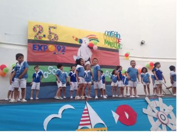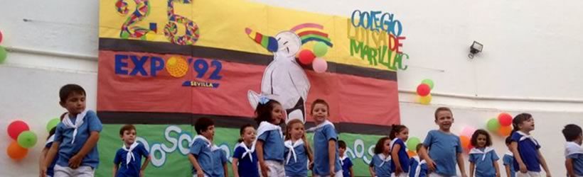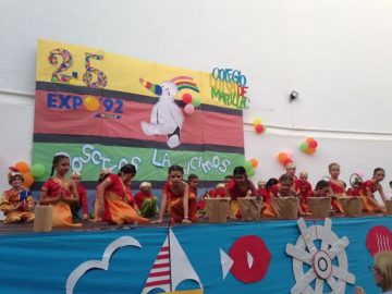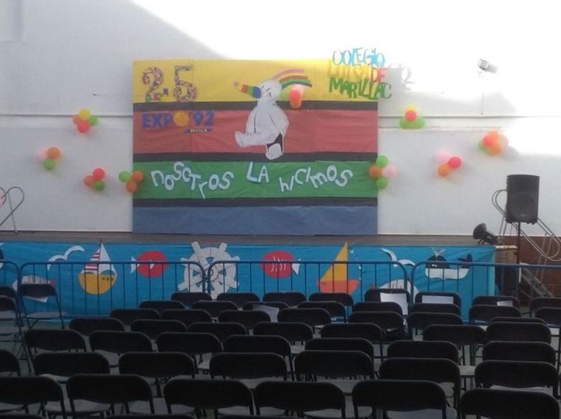 Este año la temática era el 25 aniversario de la Expo’92 celebrada en Sevilla, por lo que cada curso de las diferentes etapas realizaron bailes de los distintos paises que participaron mostrando al mundo su cultura en cada uno de los pabellones que se establecieron.